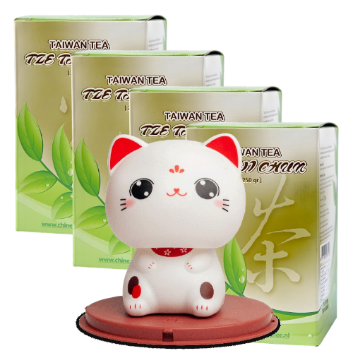 Aanbieding in de maand november: bij bestelling van 4 x 250 gram Tze Tji Chun groene een Gelukskat op zonnecellen (waarde € 15,-) gratis! Bovendien heeft u bij deze bestelling geen verzendkosten!