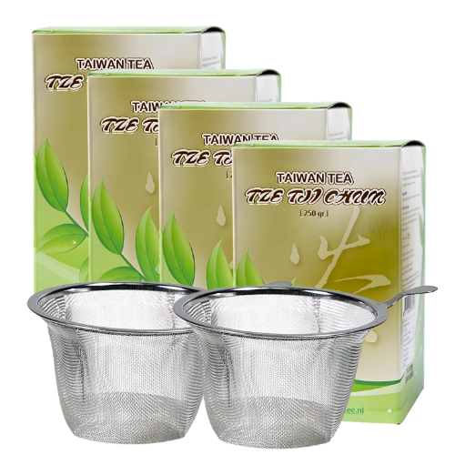 Aanbieding in de maand juli: bij 4 pakken Tze Tji Chun van 250 twee theezeefjes gratis! En bij deze bestelling heeft u geen verzendkosten!
